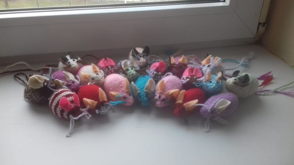 Ogromne podziękowania dla Pani Karoliny W. za te myszy! Uwierzycie, że te cuda Pani Karolina udziergała własnymi rękoma? Wszystkie, co do jednej przekazała dla naszego domu tymczasowego, który opiekuje się fundacyjnymi kotami.