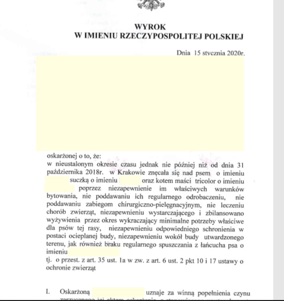 Nie mieliśmy wcześniej głowy do takiego posta, ale już w 2020 roku zakończyły się 3 sprawy sądowe, a oskarżeni zostali ukarani za znęcanie się nad zwierzętami! Brak odrobaczeń, szczepień, brak koniecznego leczenia, brak utwardzonego terenu wokół budy czy samej budy to także znamiona znęcania.