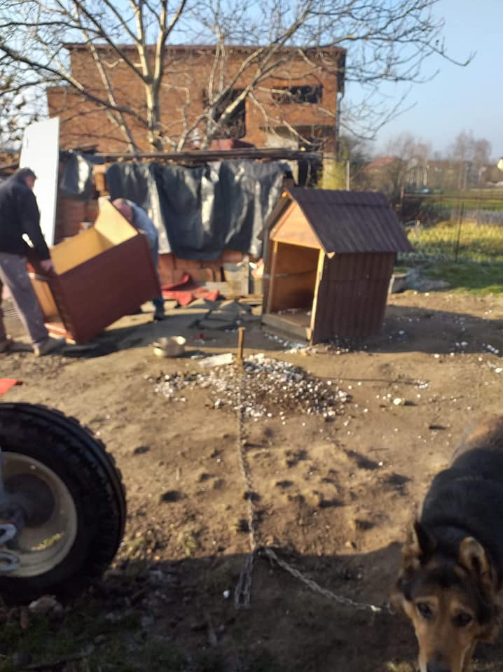 Policjanci z komisariatu w Zabierzowie okazali się być wyjątkowo empatyczni na los psiaka. Uspokoili właścicielkę byśmy mogły powiedzieć czego oczekujemy. Pani powiedziała, że nie stać jej na nową budę w tej chwili. My widząc leciwego psiaka, który nie ma ciepłego schronienia od razu wyszliśmy z inicjatywą przywiezienia mu cieplej budy. On nie mógł czekać ani dnia dłużej...