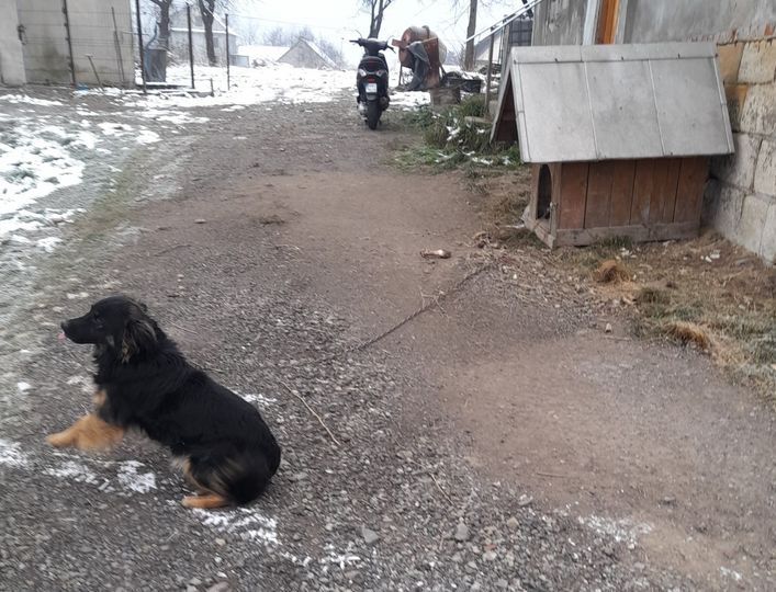 Psia budka była dosyć solidnie ocieplona. Pan rozpoczął także budowę kojca. Mieszka przy bardzo ruchliwej drodze, a ogrodzenie nie jest kompletne. Psiak bardzo pozytywnie reagował na swojego opiekuna. Pan deklarował, że zabiera go na noc do domu. W to nie śmiemy wątpić, ponieważ sierść psiaka błyszczy, a psiak nie był brudny ani śmierdzący. Pan przy nas spuścił psiaka z łańcucha, by pokazać, że go słucha. I rzeczywiście - piesek reagował na wołanie i z merdającym ogonkiem podbiegał do swojego właściciela.