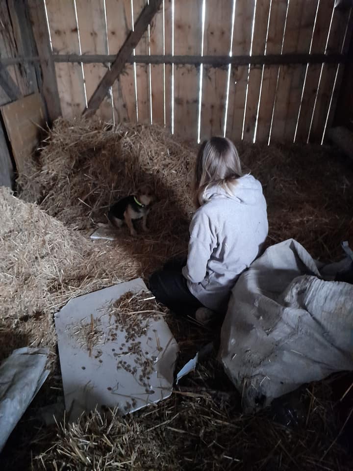 Jak wiecie w ostatnim czasie mamy mnóstwo pracy. Przyjęłyśmy pod opiekę o wiele za dużo psów, czego skutków staramy się uniknąć. Mamy zaplanowane różne działania, wiele spraw wpada nadprogramowo i burzy cały harmonogram, a codziennie ktoś prosi nas o pomoc. Doba ma ograniczoną liczbę godzin, a my możliwości. Nie posiadamy swojego przytuliska, na każde zwierzę musimy mieć plan, gdzie je umieścić i czas by interweniować. Gdy dowiedzieliśmy się o psiakach ze stodoły żywcem nie wiedziałyśmy co z nimi zrobić. Psiaki były dokarmiane, miały ciepło, a niebezpieczeństw w tym miejscu niewiele. W końcu udało się wygospodarować trochę czasu, a on ostatnio cenniejszy od pieniędzy (do tego miejsca, to ponad godzina drogi w jedną stronę).