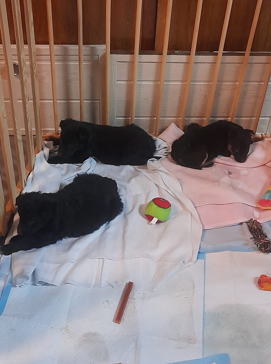 W każdym razie dołączyły do nas te 3 kluseczki. 2 pieski i sunia. Będą psiakami średniej wielkości. Jeszcze nie są do adopcji. Musimy uporać się z robalami i przygotować psiaki, aby w nowe życie szły już bezpiecznie.