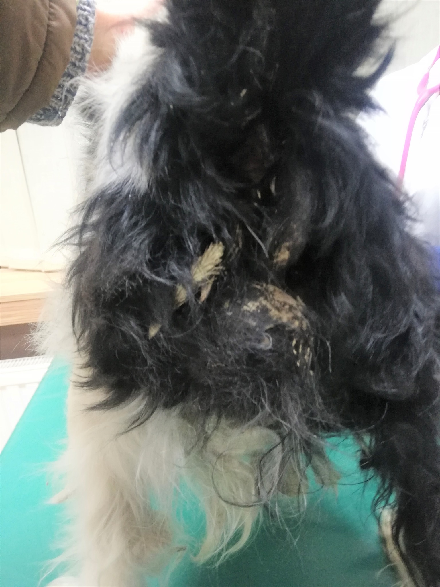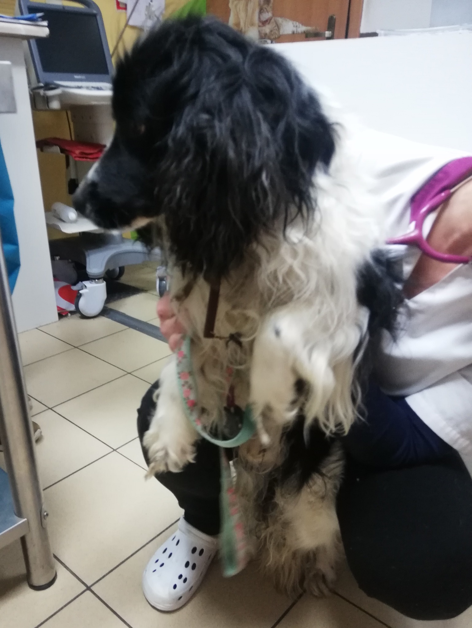 Zabrałyśmy go od razu do lecznicy, gdzie został na noc na obserwację - oprócz uporczywego kaszlu ma wysoką temperaturę. Niestety może tam zostać tylko do jutra. Szukamy na cito domowego tymczasu, ale bez innych psiaków, bo takie infekcje przenoszą się drogą kropelkową.