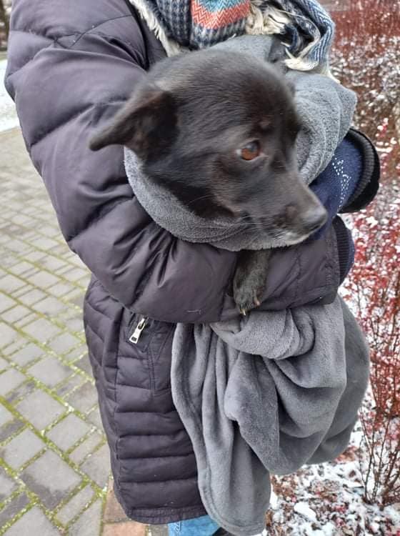 A Pola? Odpięta z wstrętnego łańcucha, zabrana z tego czegoś, co imituje budę, szybko zrozumiała, że chcemy dla niej lepszego życia i wtuliła się w ramiona inspektorki najmocniej jak mogła. Całą drogę spała! Jak większość psiaków, które odbieramy. Od dłuższego czasu na zimnie w końcu mogą poczuć ciepło...Pola waży zaledwie 5kg! Nie chcemy nawet myśleć co by się z nią działo, gdyby mróz sięgnął 15 czy 20 stopni.