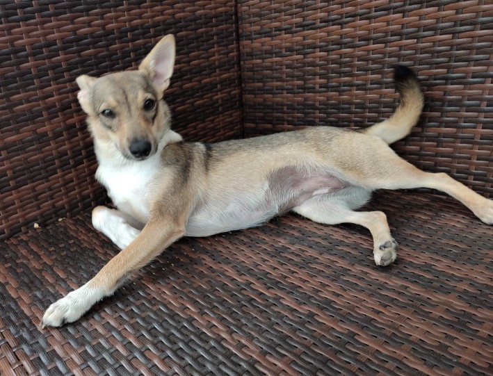 Śliczna, filigranowa, wesoła i przylepna sunia z bolesną przeszłością.