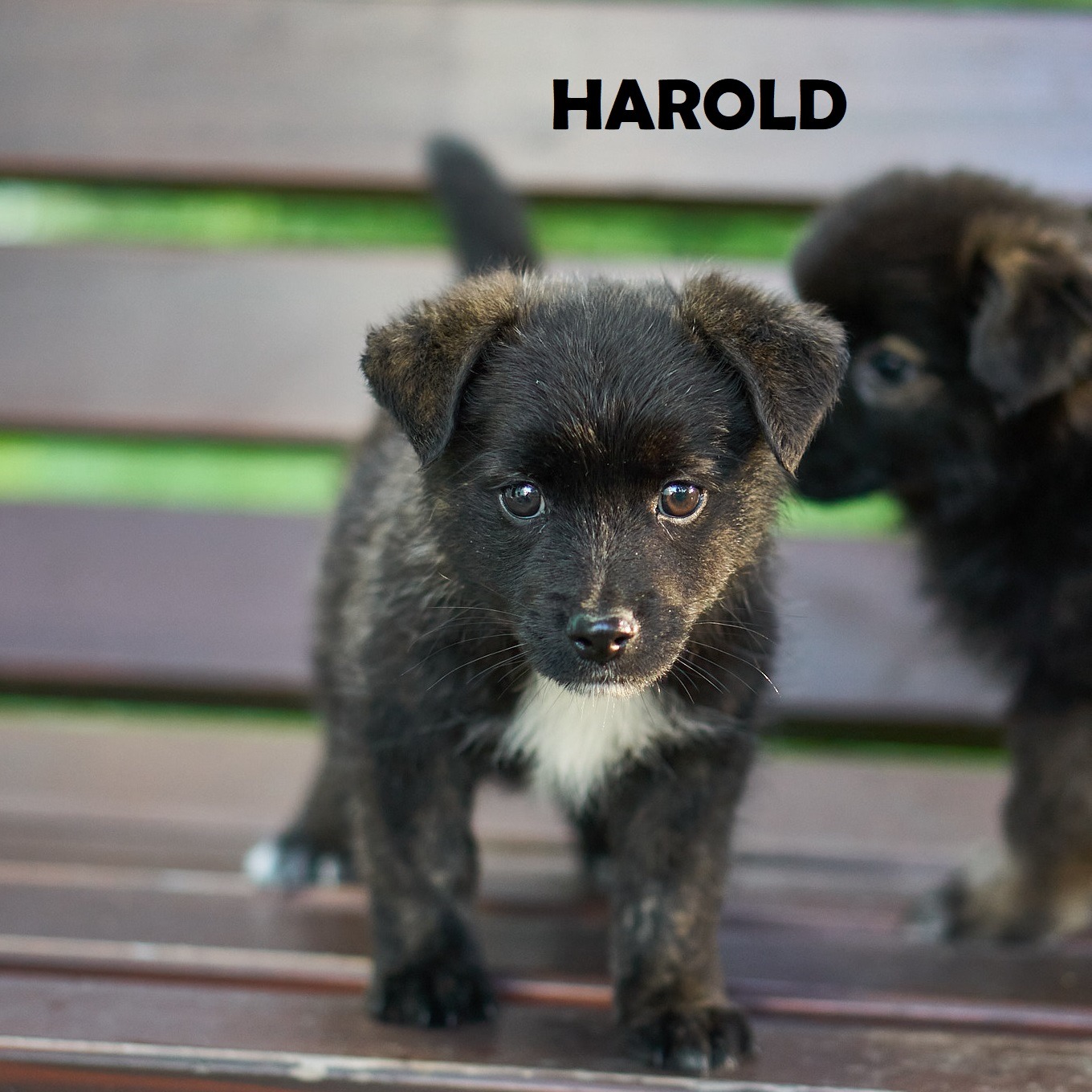 Harold (z białym krawatem) jest spokojniejszy od Gucia i troszkę bardziej nieśmiały. Uwielbia aportować i biegać za zabawkami. Jest bardzo grzeczny (jak na szczeniaka).