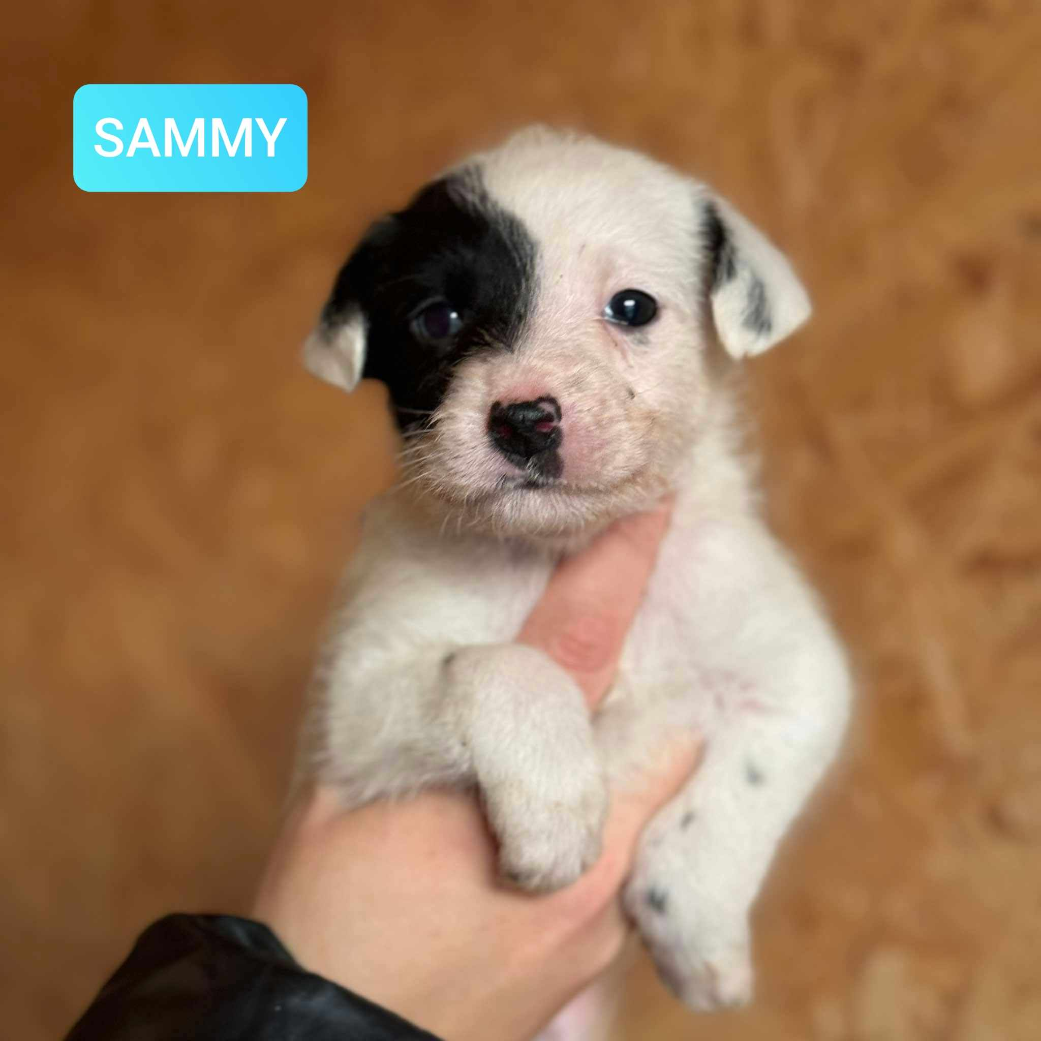 Sammy ma ok. 6 tygodni, jest już odrobaczony i odpchlony. Wyrośnie na średniej wielkości psiaka (ok. 15 kg.).