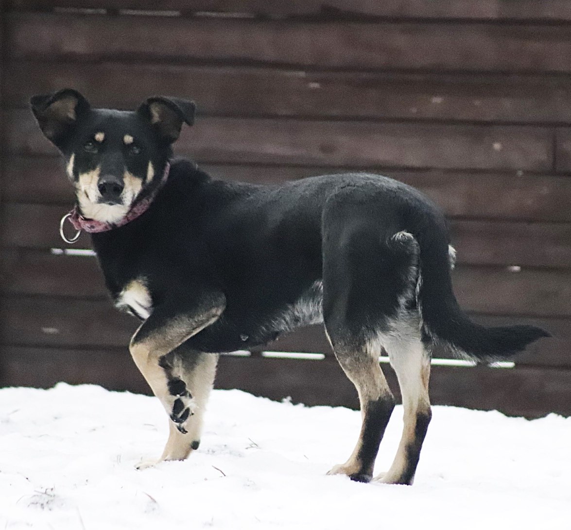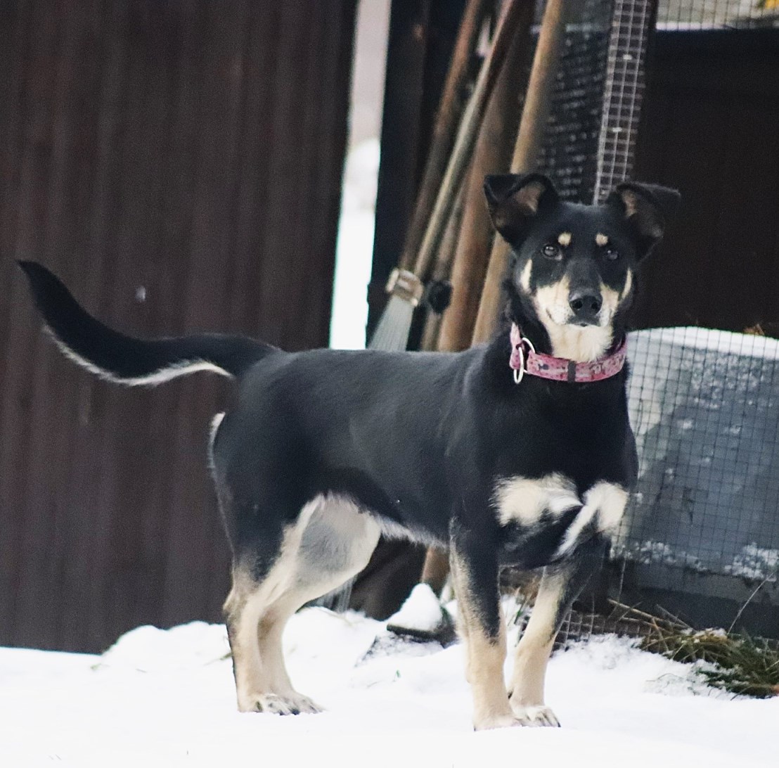 Gaja to młoda sunia, która trafiła do nas w ciąży, z miejsca gdzie musiała sobie radzić w stadzie zaniedbanych psów.