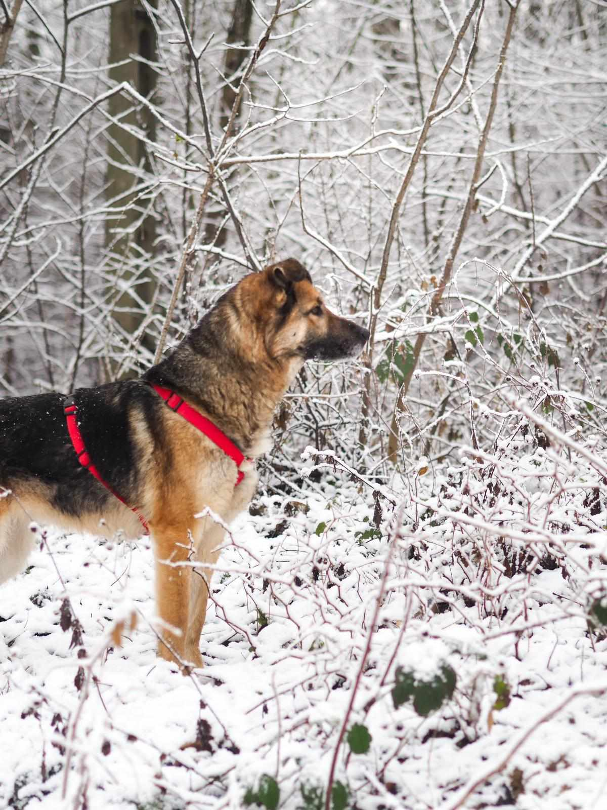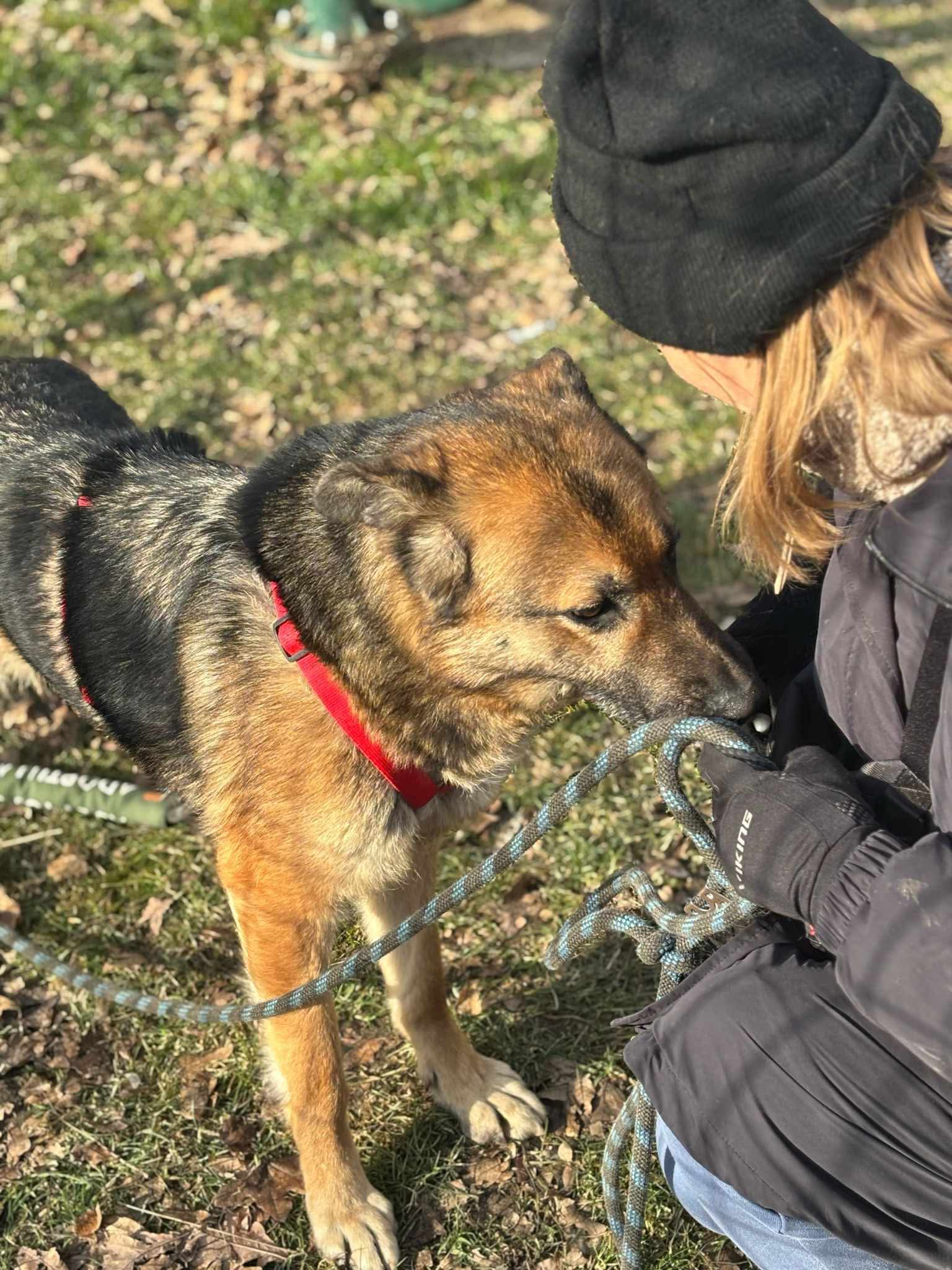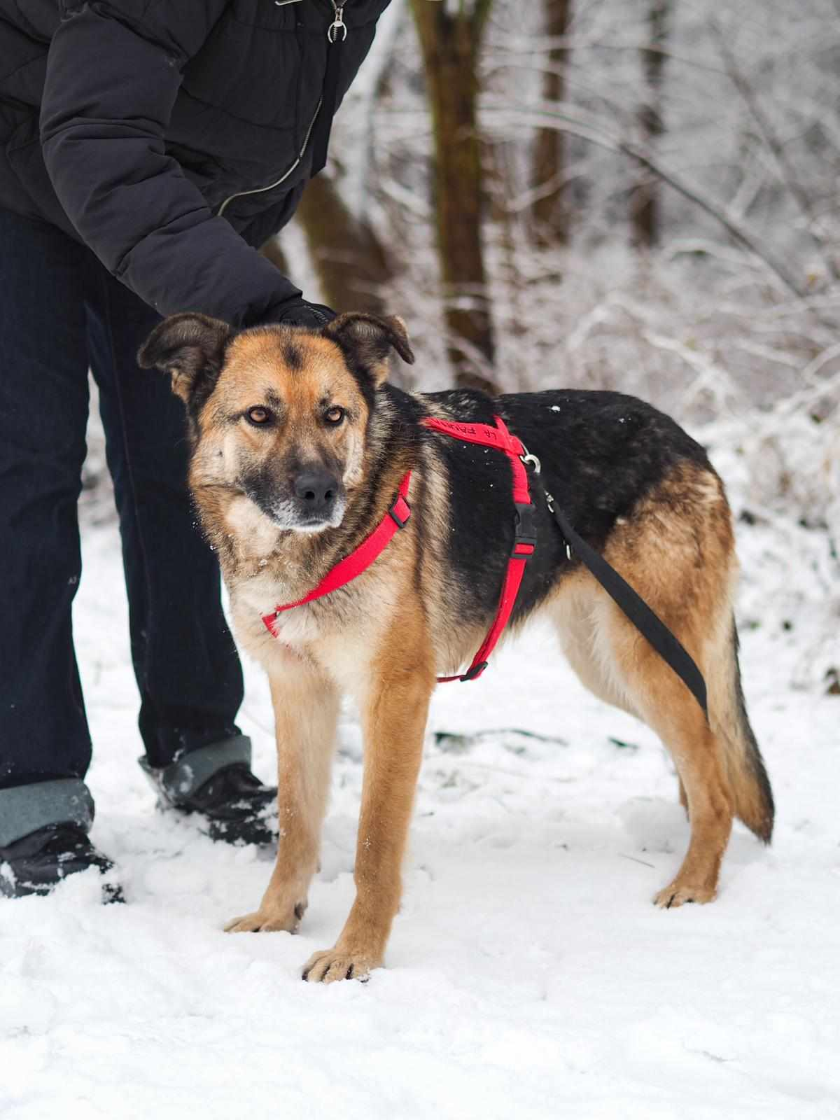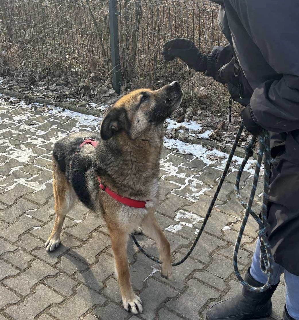 Diuna to wspaniała sunia, która trafiła do nas ze złych warunków. Diuna z dnia na dzień coraz bardziej przekonuje się, że człowiek wcale nie musi być taki zły – lgnie do ludzi, pragnie kontaktu, uwielbia zabawę 😊 Jest zawsze chętna na spacery, coraz lepiej idzie jej nauka chodzenia na smyczy! Jej stosunek do innych psów jest neutralny, dobrze dogaduje się z psami o łagodnym, spokojnym usposobieniu 😊.