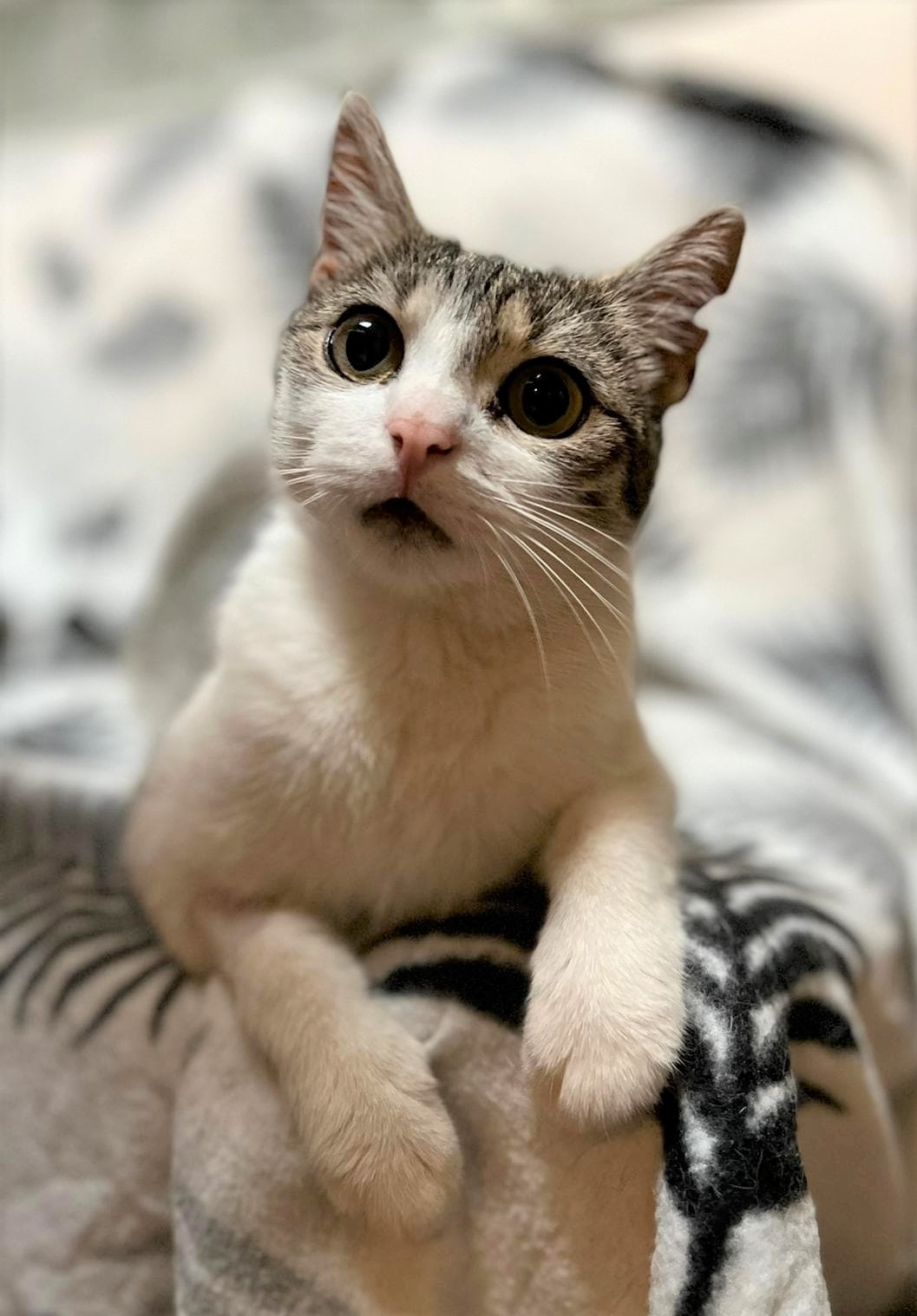 Mizia to drobna młodziutka koteczka, która ponad wszystko w świecie kocha przytulanie i głaskanie. Oczywiście nie pogardzi też zabawą i dobrym jedzonkiem.