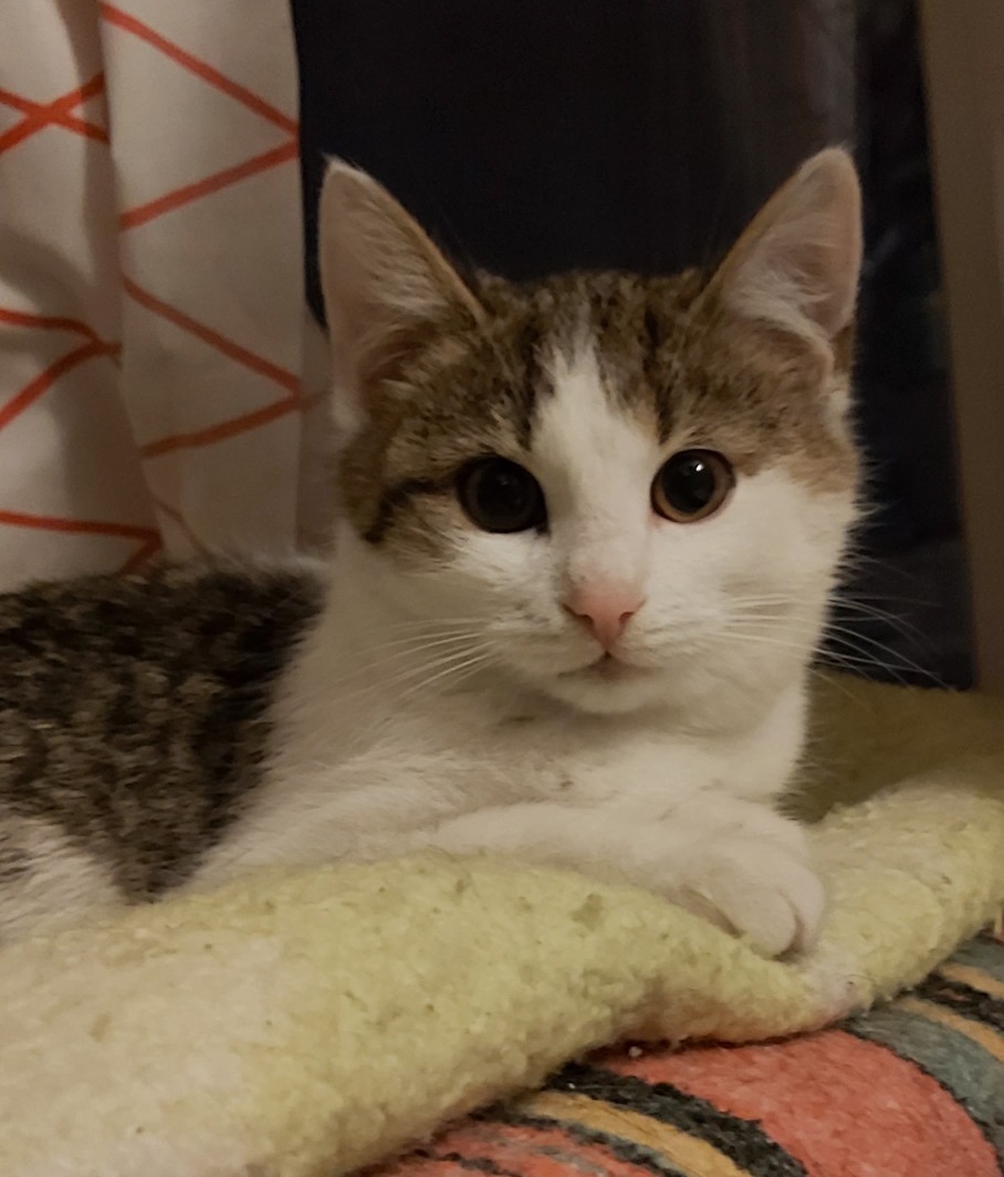 Tosia to 4-miesięczna koteczka, jedna z czwórki rodzeństwa urodzonego przy termach w Białce. Cała rodzinka trafiła pod naszą opiekę z kocim katarem. Tosia jest już całkiem zdrowa i gotowa do adopcji. Świetnie dogaduje się z kotami i psem w domu tymczasowym. Jest przyjaznym, rozbrykanym kociakiem.