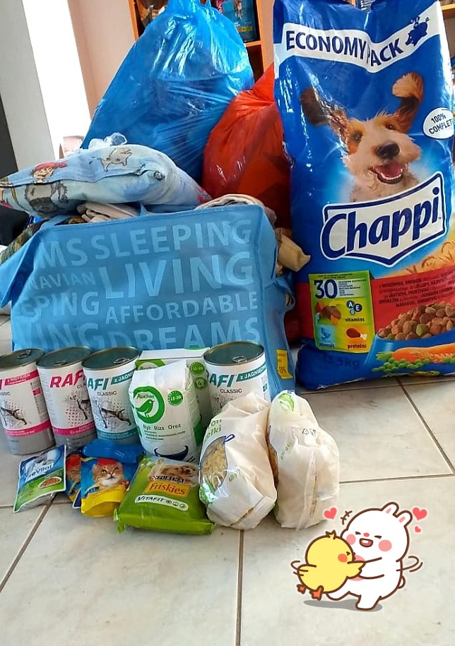 Wśród darów m.in. dużo dobrej jakościowo karmy dla psów i kotów, smaczki, obroże, smycze, legowisko! Bardzo dziękujemy! ❤️🐾
