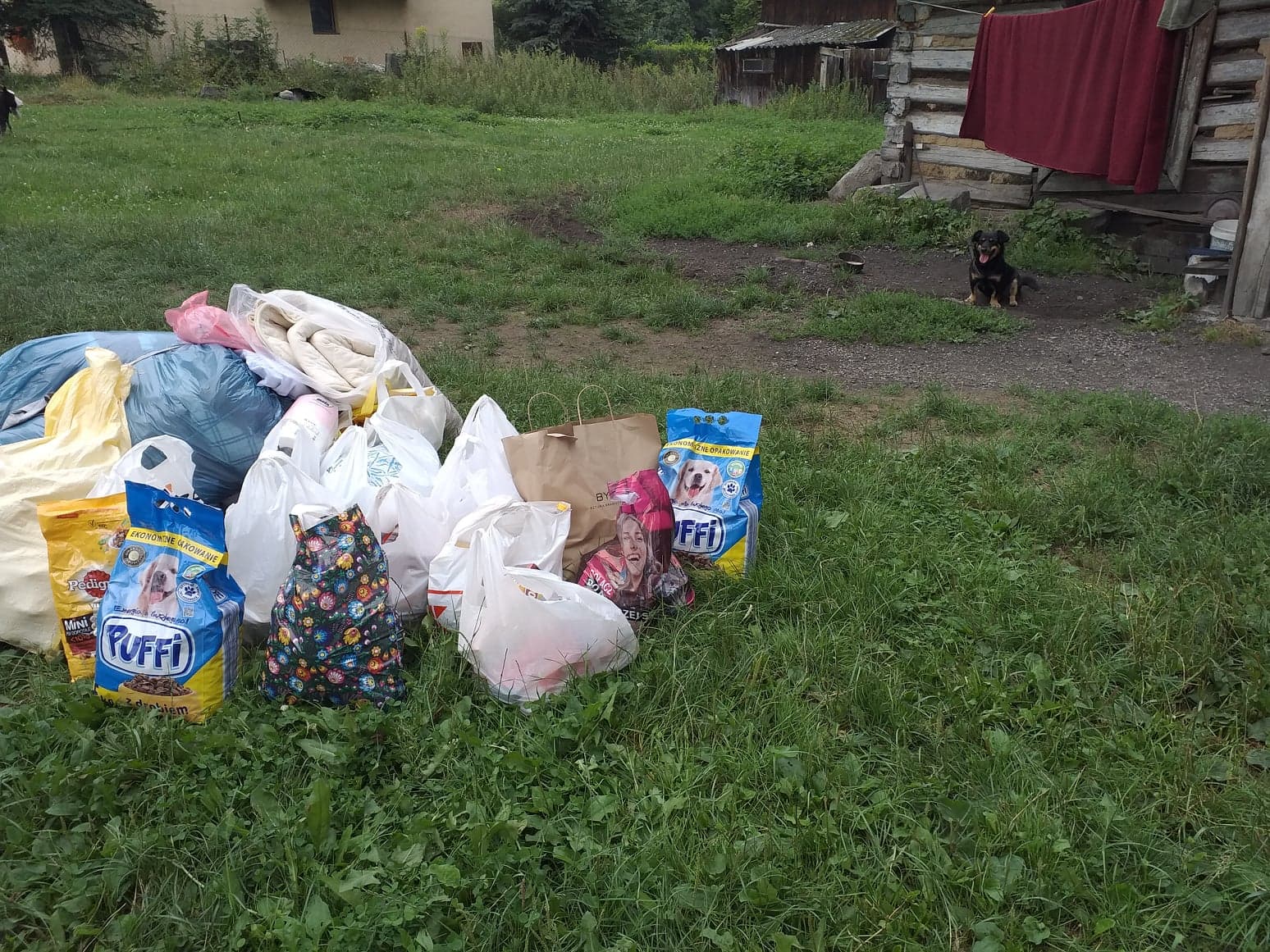 W minionym tygodniu byliśmy u Pani Józi (starszej Pani mieszkającej w bardzo złych warunkach niedaleko Krakowa). Przywieźliśmy dla niej trochę rzeczy, w tym pieluchomajtki od naszego anonimowego darczyńcy, z których chyba najbardziej się ucieszyła. Zostawiliśmy również karmę dla psa i kotów. Psiak jak zwykle z piękną błyszczącą sierścią, z wodą w misce i jedzeniem. Nie wszędzie gdzie jest bieda psiaki mają źle. Za jakiś czas znowu przyjedziemy..(Pies w nocy śpi w domu na poduszce)