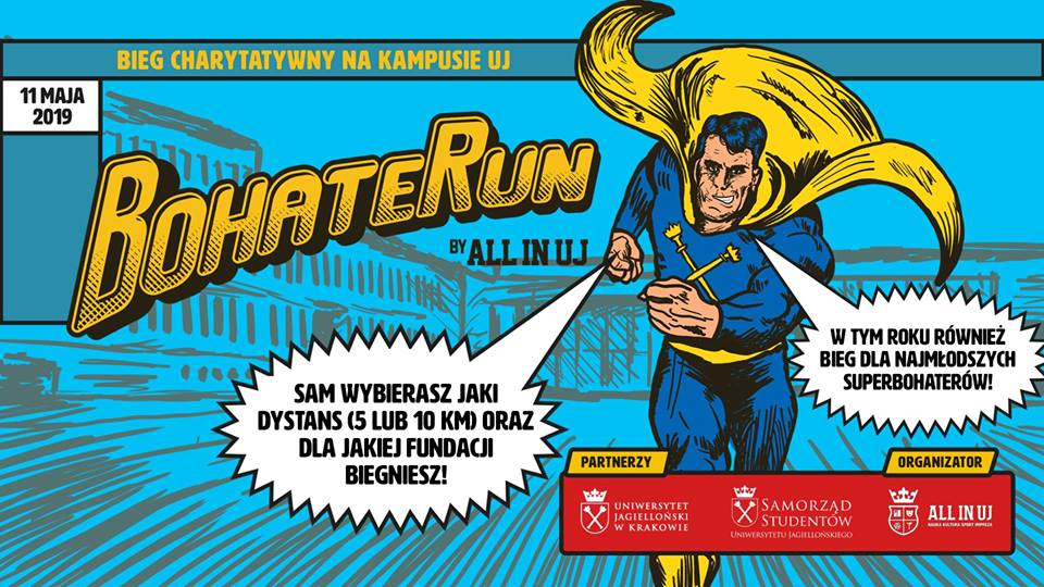 Za sprawą All In UJ superbohaterowie powracają nad Kampus Uniwersytet Jagielloński na Ruczaju, aby nieść pomoc potrzebującym i krzewić zdrowy tryb życia! To już trzecia edycja biegu, po ubiegłorocznym sukcesie #BohateRun przygotowaliśmy dla Was kolejną edycję tego sportowego wydarzenia! Zobacz, jak bawiliśmy się w ubiegłym roku: https://www.facebook.com/AllInUJ/videos/1698349523588439/