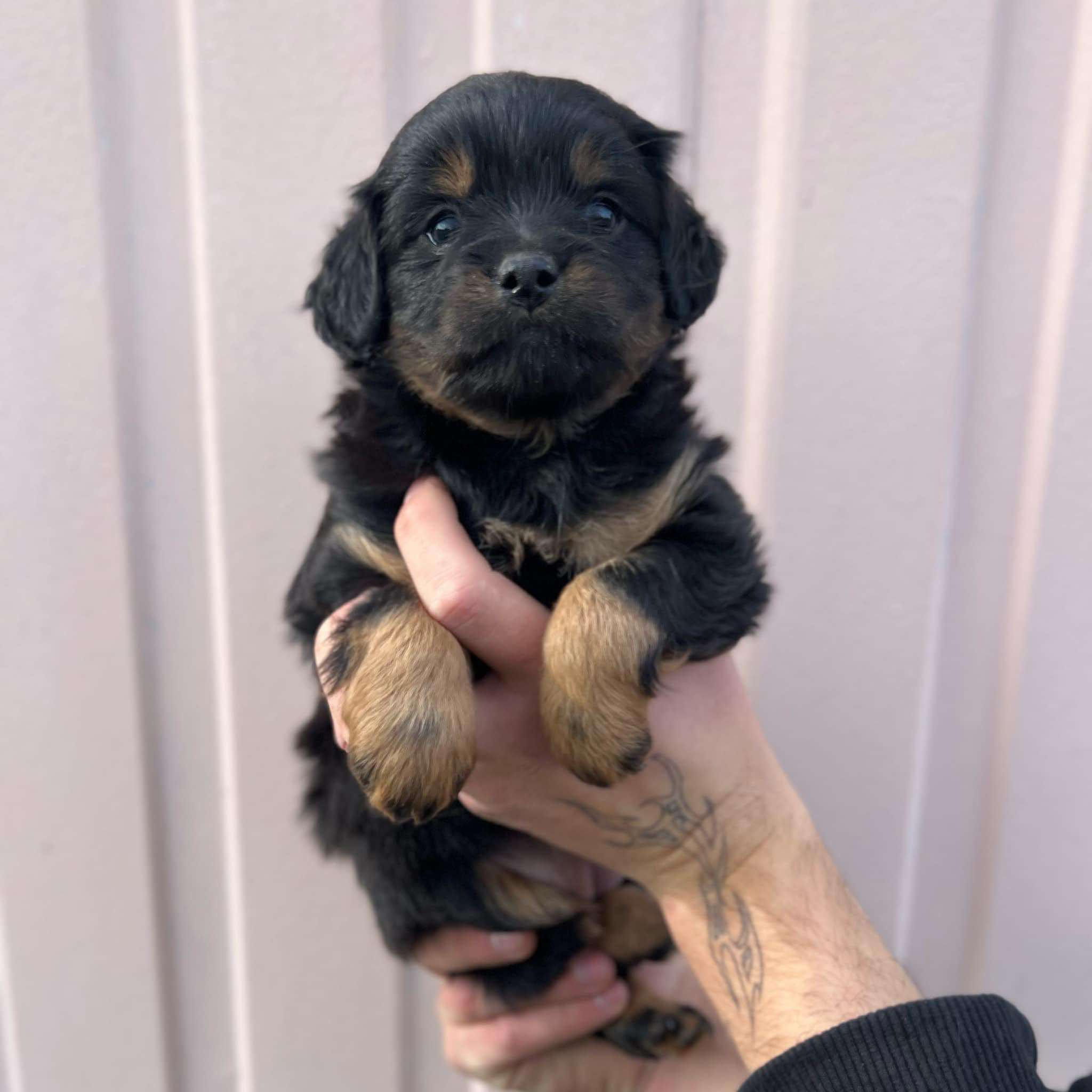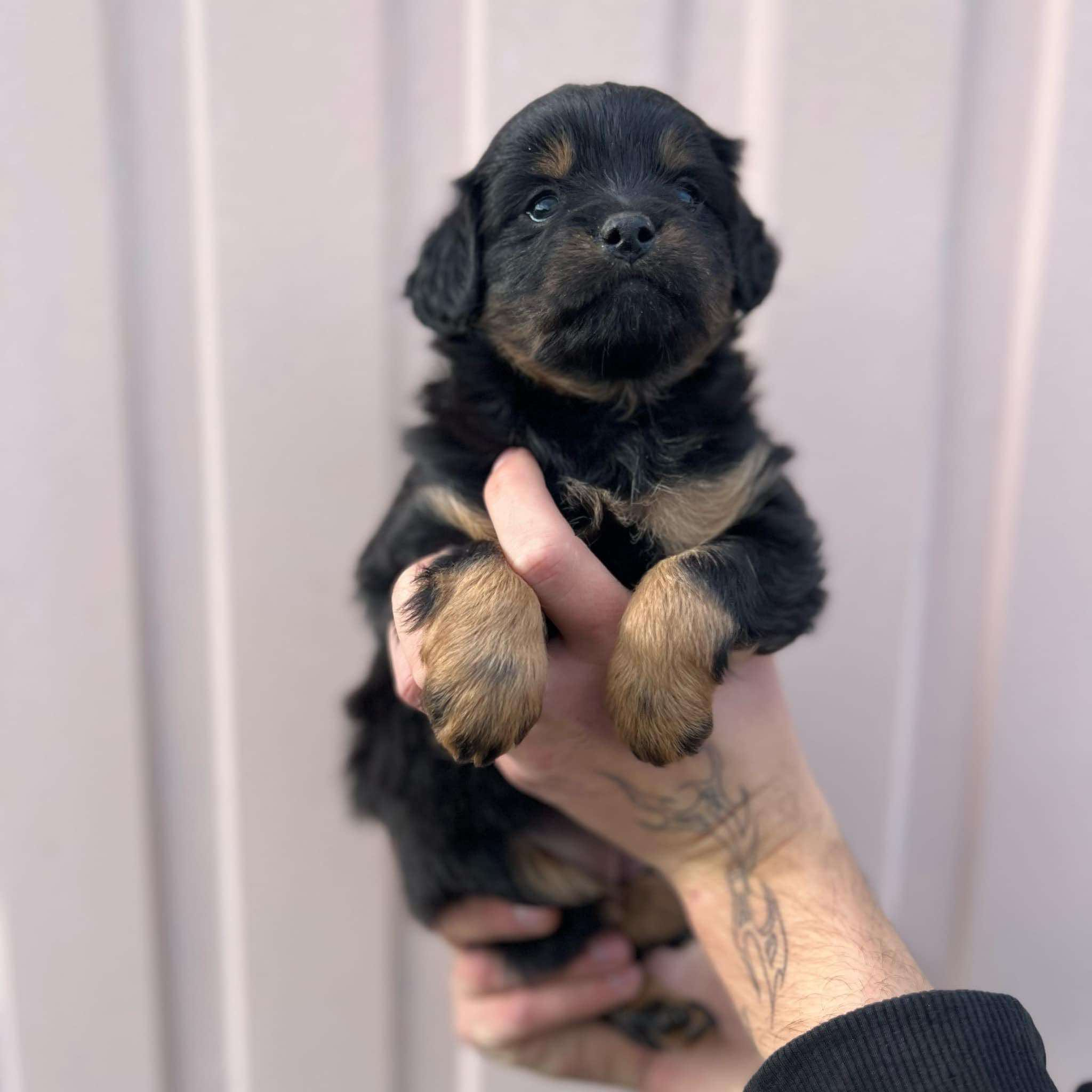Daisy ma na ten moment ok. 7 tygodni, ale już teraz zaczyna rozglądać się za nowym domkiem! Jej mama sięga wielkością jedynie do łydki, przewidujemy, że Daisy wyrośnie na małą sunię.