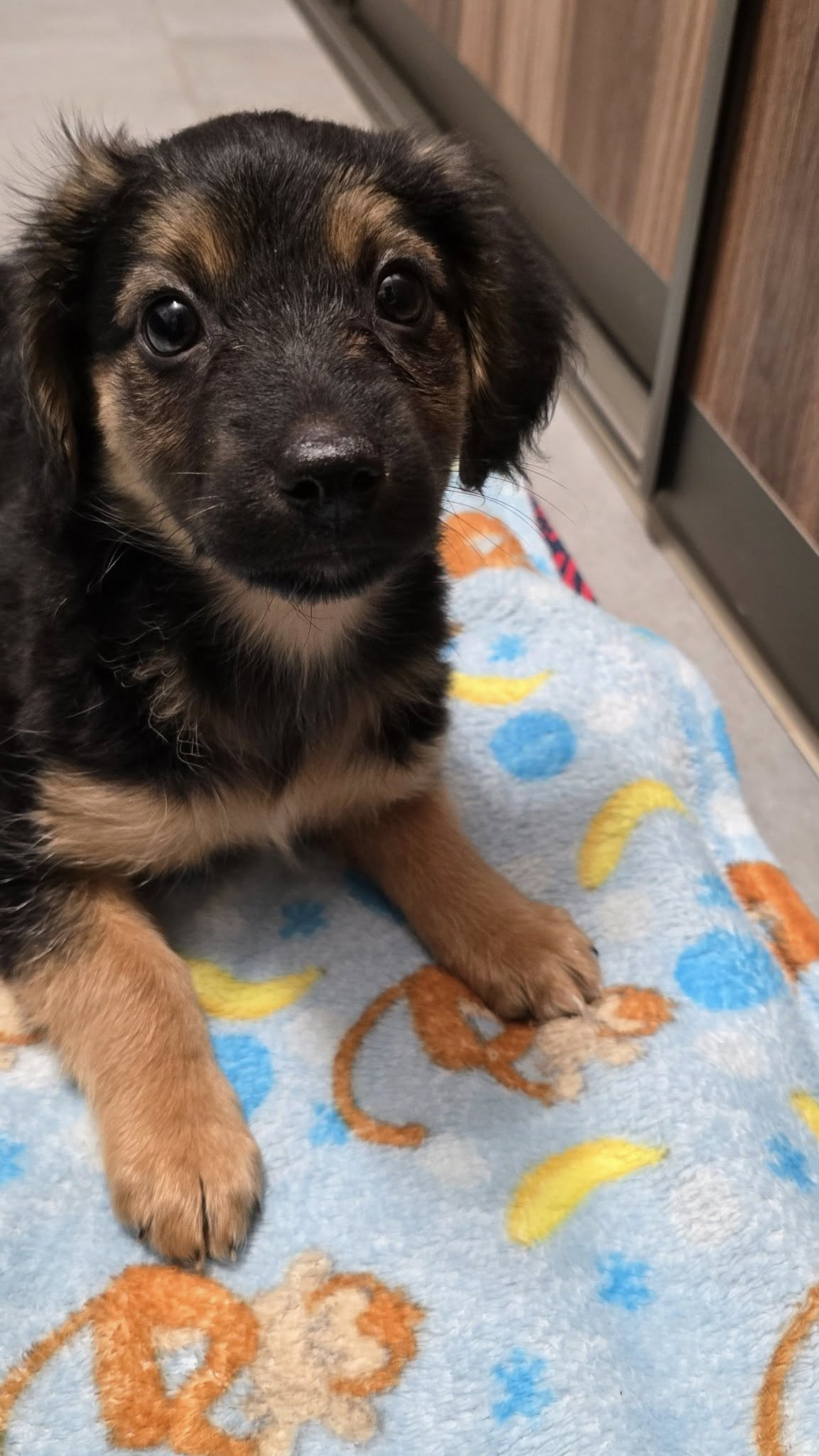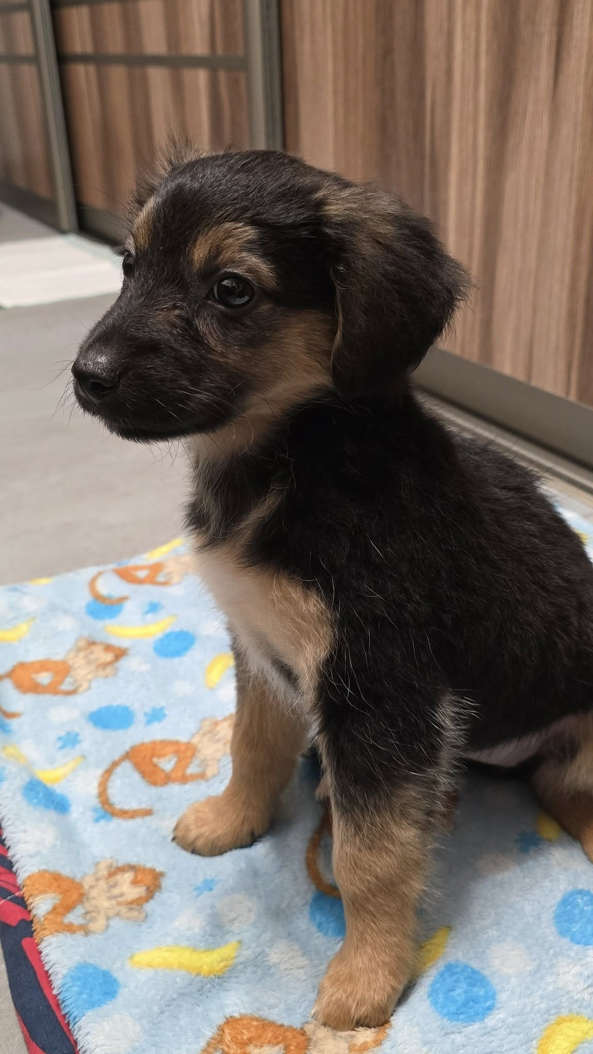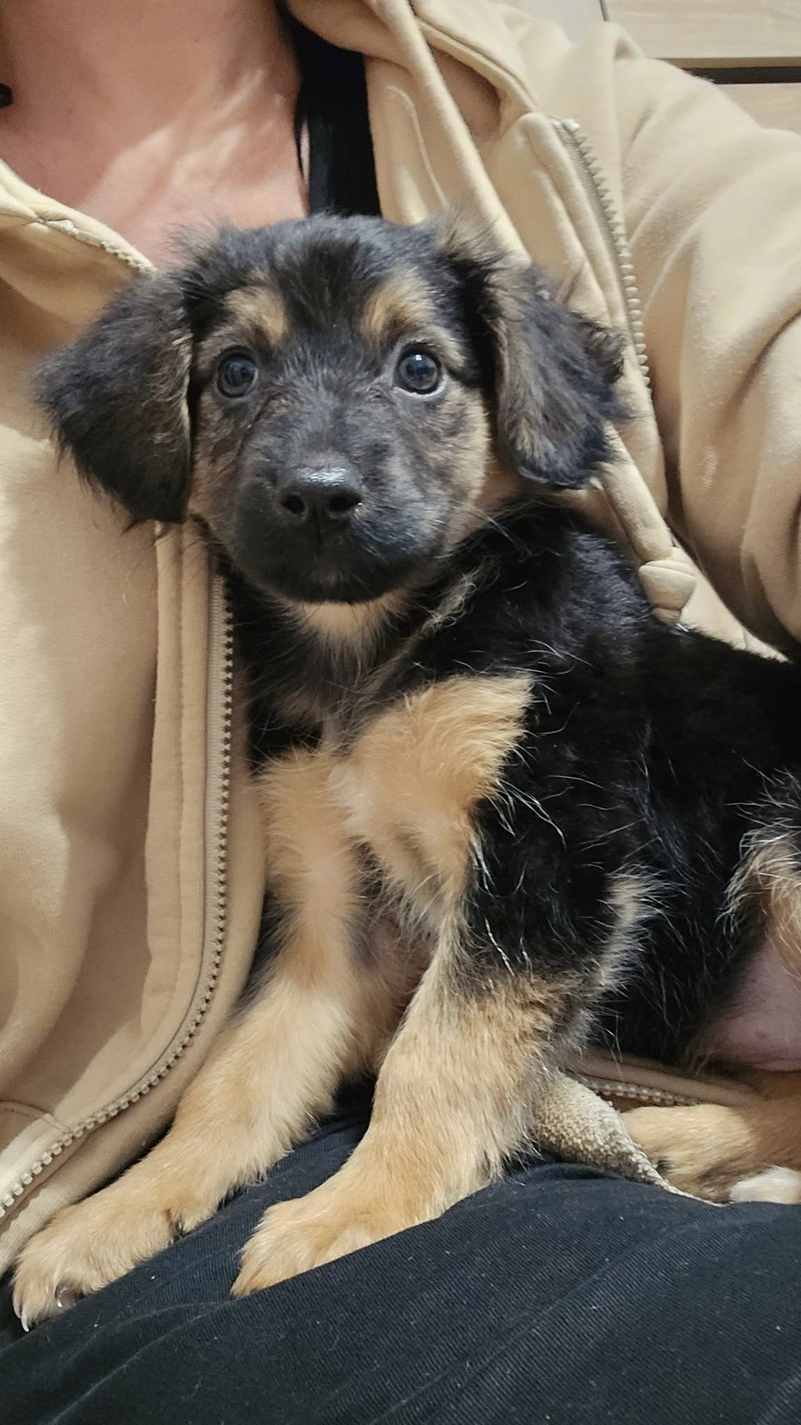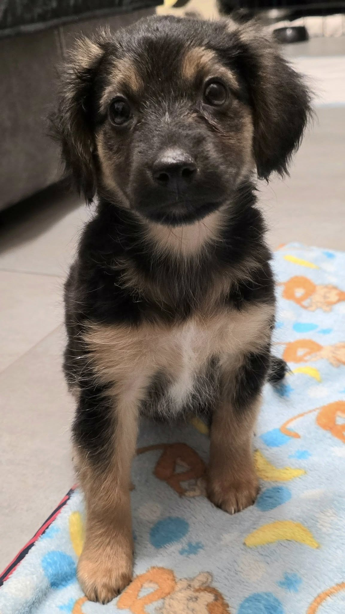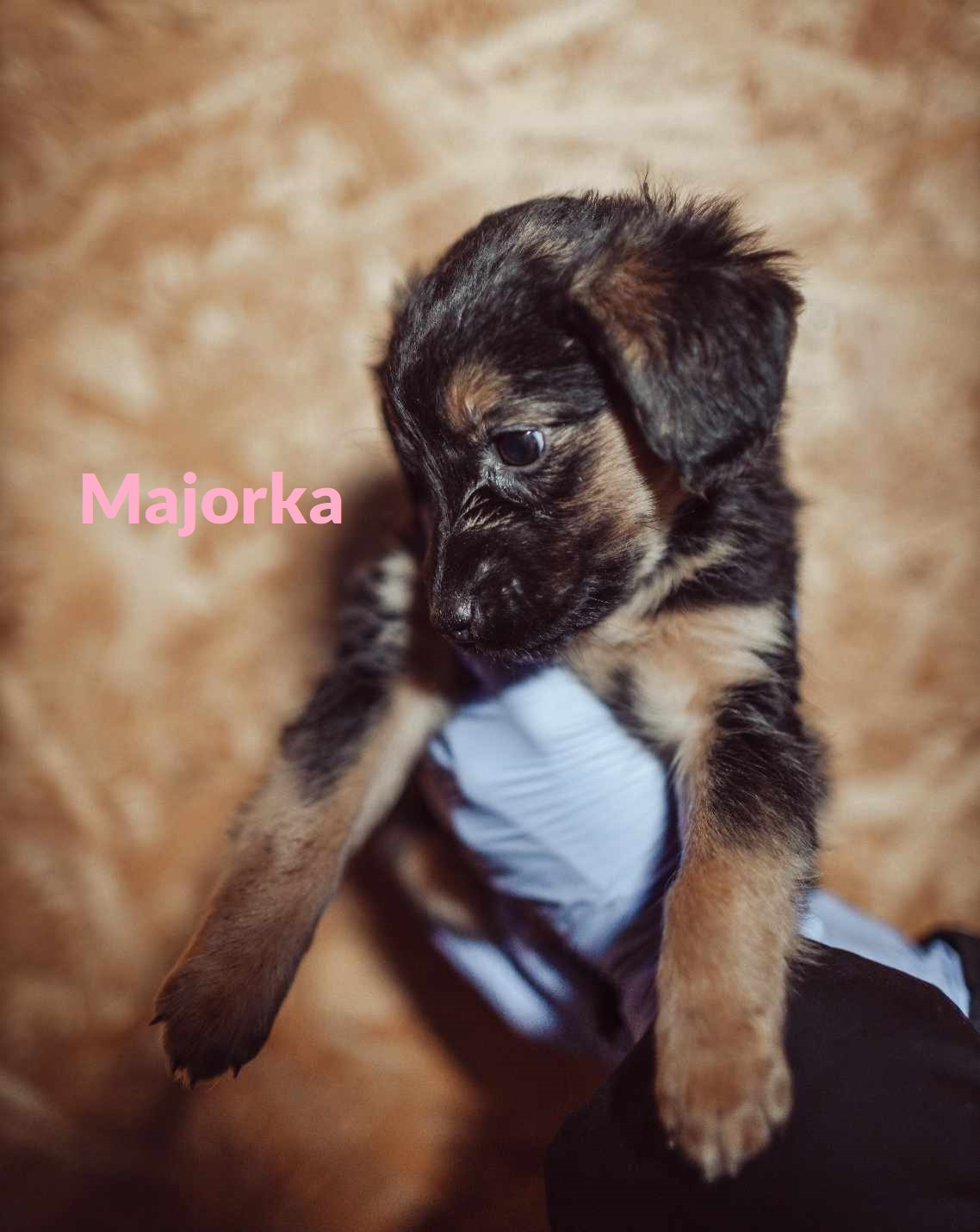 Majorka ma teraz ok. 9-10 tygodni. Jest już po kwarantannie, kończymy odrobaczanie. Do czasu adopcji będzie zachipowana i po pierwszym szczepieniu. Sunia docelowo będzie średniej wielkości, mniej więcej do kolana.
