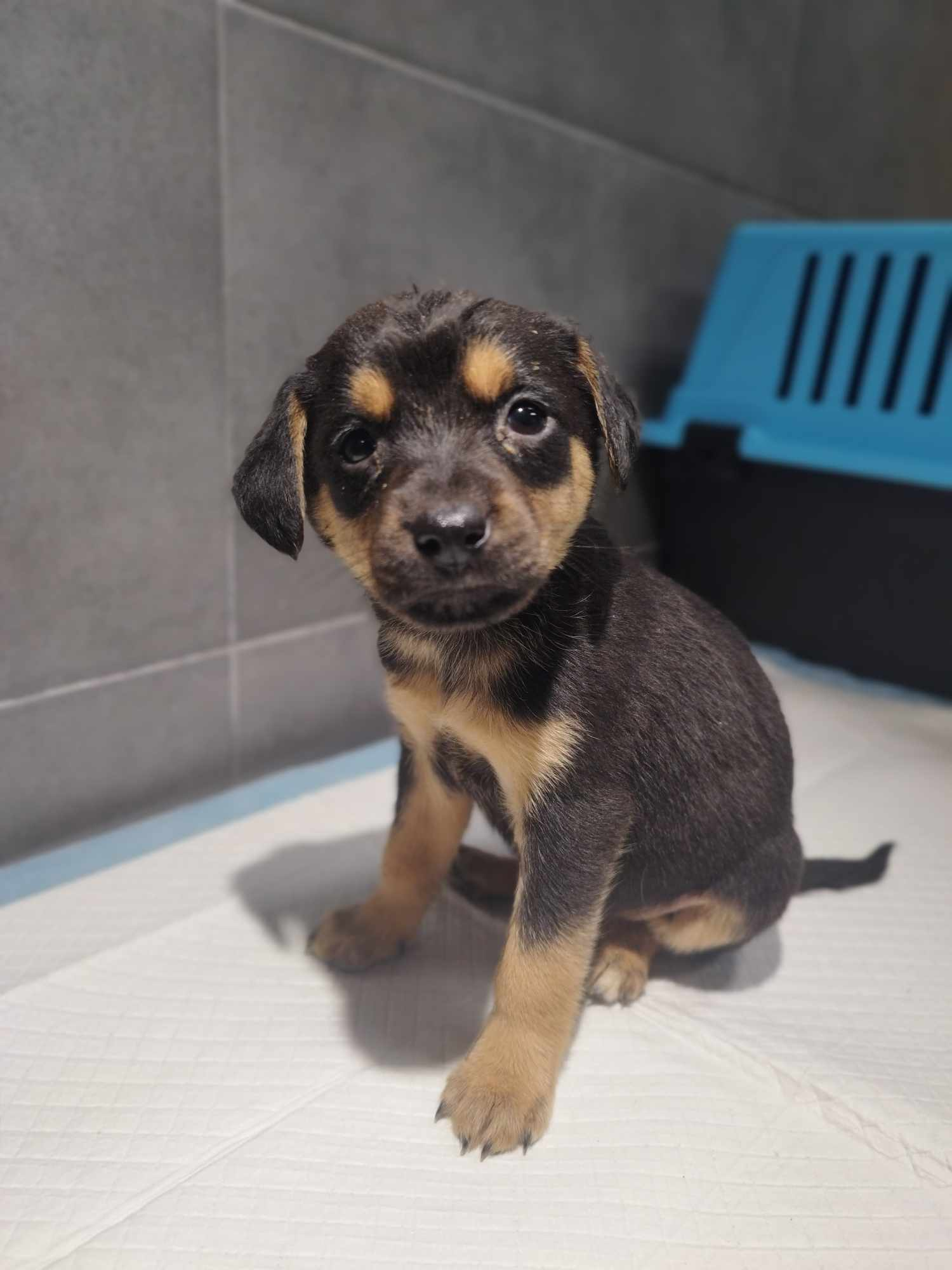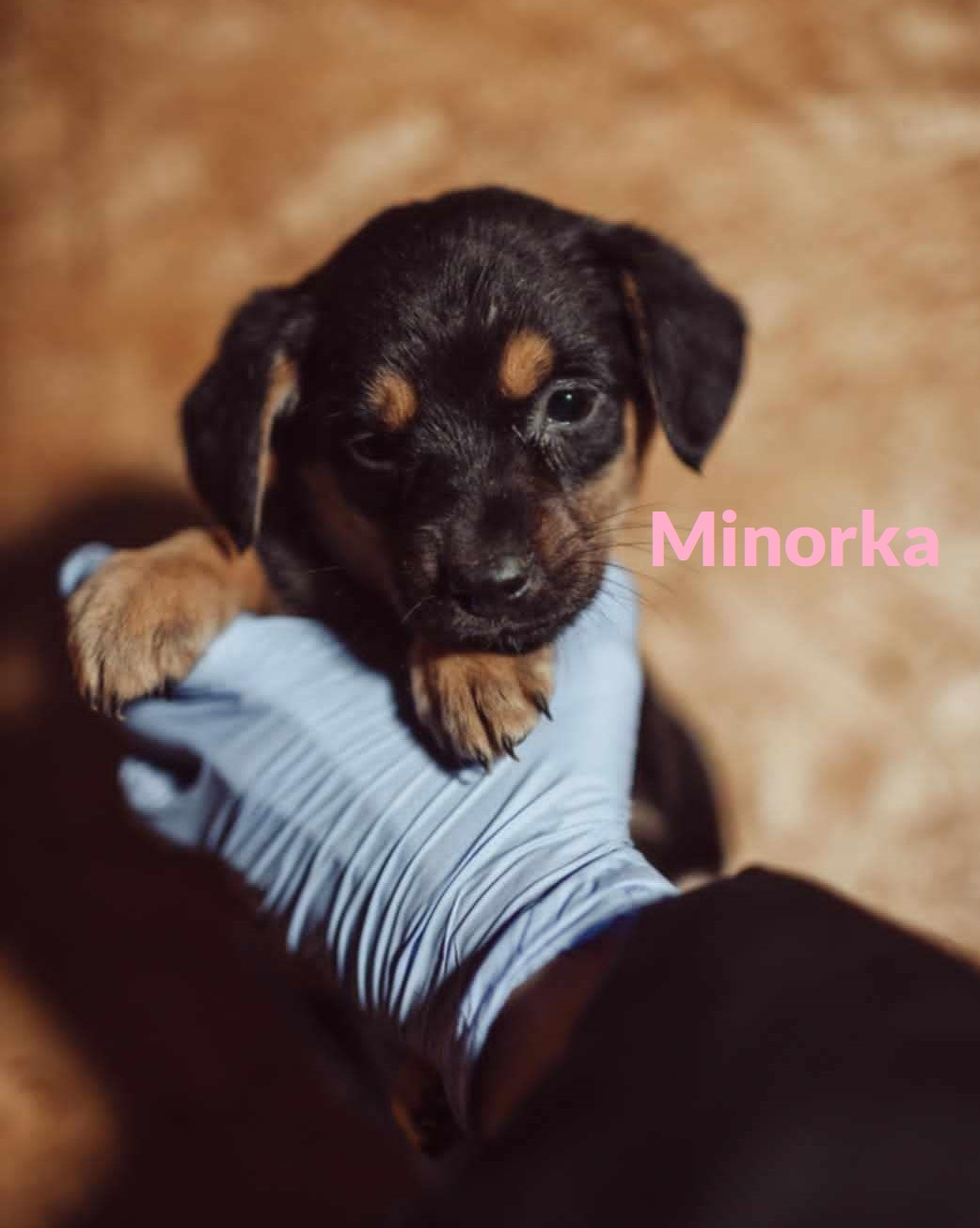 Minorka ma teraz ok. 9-10 tygodni. Jest już po kwarantannie, zachipowana i wstępnie odrobaczona. Do czasu adopcji będzie też po pierwszym szczepieniu. Sunia docelowo będzie średniej wielkości, mniej więcej do kolana.