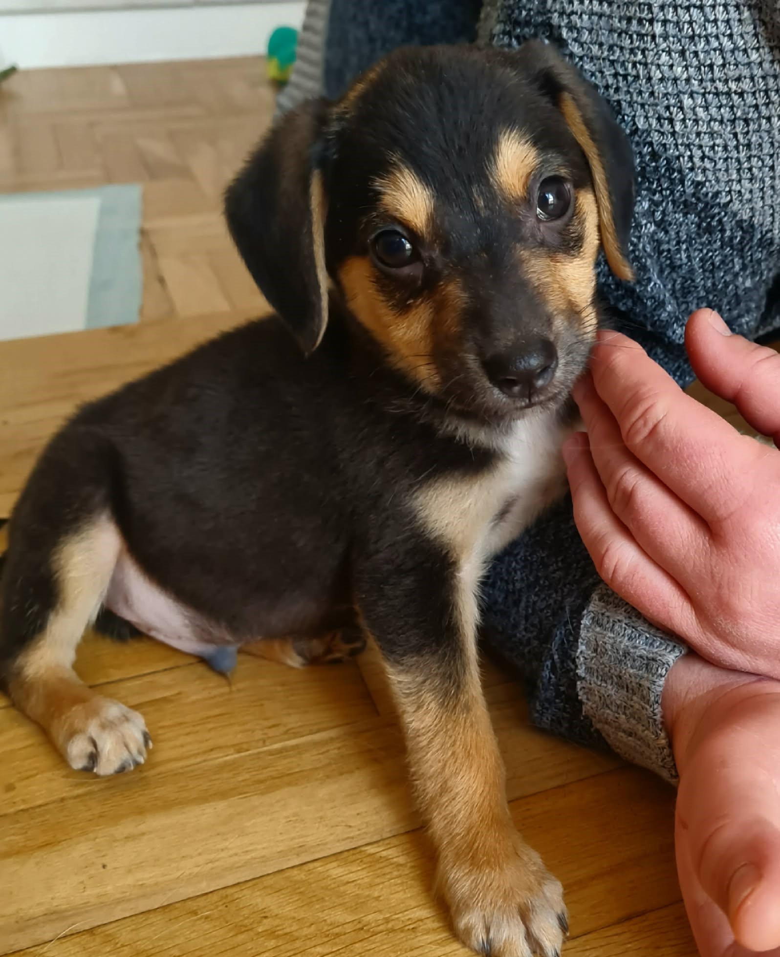 Ma teraz ok. 11 tygodni. Jest odrobaczony, zachipowany i po pierwszym szczepieniu.