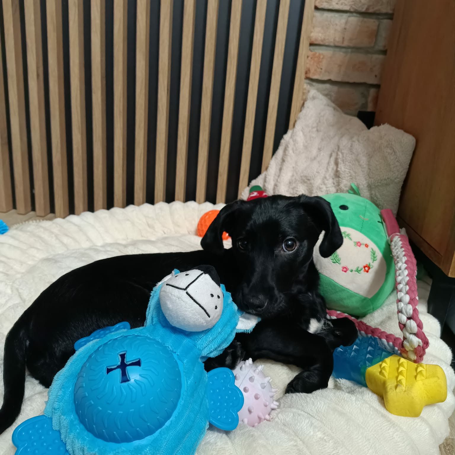 Feniks to piesek lękliwy i niepewny wobec nowości, ale gdy tylko coś pozna, szybko się oswaja. Potrzebuje spokojnego, cierpliwego opiekuna, który pokaże mu świat w jego tempie. W zamian daje ogrom bliskości- uwielbia kontakt z człowiekiem i chętnie się przytula