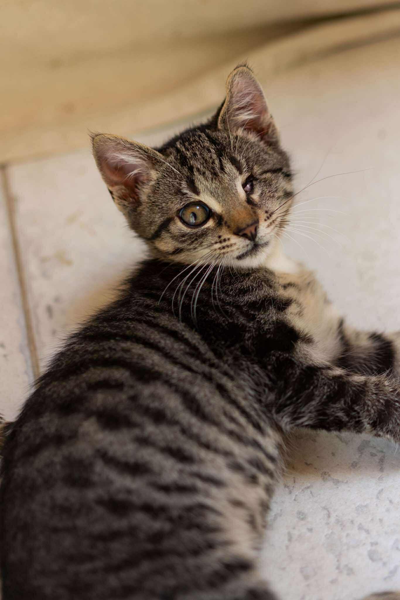 Henio ma jedno uwstecznione oczko, natomiast drugie w pełni sprawne!! Dzięki czemu niczym nie różni się w funkcjonowaniu od zdrowego kota!