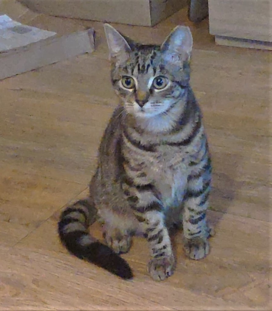 Uwielbia towarzystwo innych kotów i nie przeszkadza mu energiczny bullterier, ale wciąż nie może przekonać się do dotyku ludzkiej ręki.